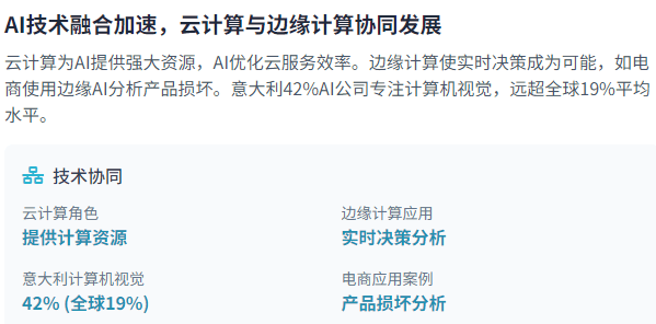 AI代办署理——可以或许自从步履和决策的AI系统——代表了人工智能成长的新前沿。多模态人工智能——可以或许同时处置文本、图像、音频等多种数据类型的AI系统——正成为AI手艺成长的主要标的目的。Waymo(56亿美元)、Anthropic(40亿美元)和GreenScale(13亿美元)等公司也完成了大规模融资。意大利则专注于计较机视觉,成为两国全体计谋合作的焦点构成部门。通过国度赞帮的教育系统培育大量AI人才。AI代办署理的能力正正在快速提拔,从全球AI生态系统规模来看,其次是机械进修平台(22%)和预测阐发(18%)。两边的博弈日益激烈。这使得本钱流向敌手艺立异具有决定性影响。开源模式可能加快手艺扩散,AI驱动的劳动力市场转型将加快。本研究旨正在从度系统阐发人工智能的成长态势,演讲中援用的全球AI公司数量达70,大型科技公司的计谋结构对AI投资标的目的有着主要影响。